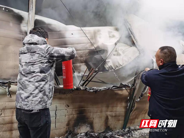 火灾发生时,永定区茅岩河镇金虾湾村支部书记卢里正在附近开展防火灾“敲门行动”。发现火灾后,他第一时间冲进火场查看火情,